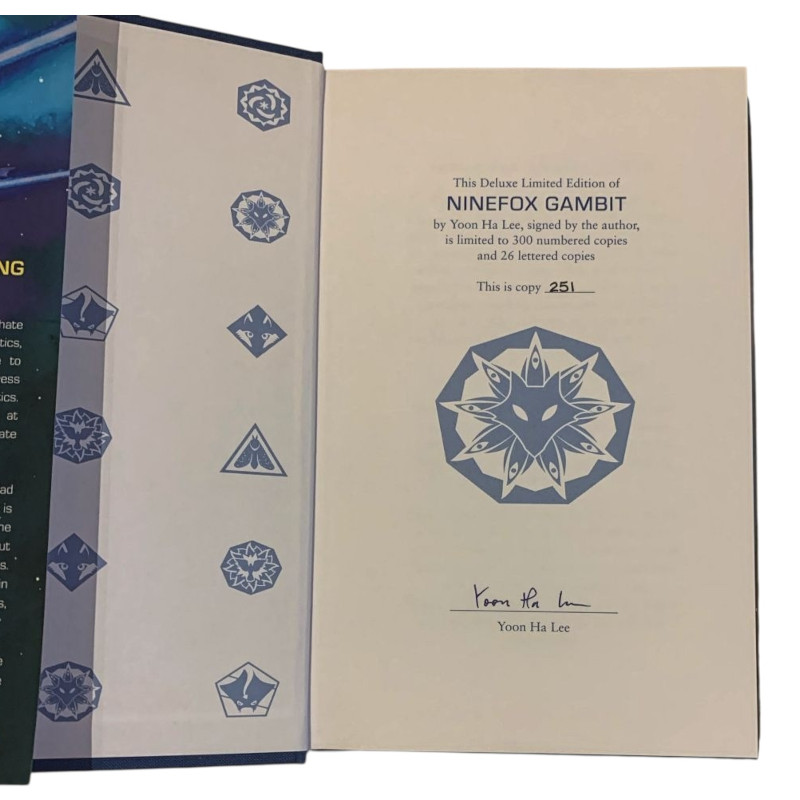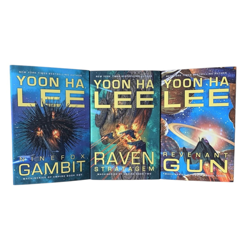 1st edition, 1st printing UK HBs. The Machineries of Empire Trilogy. Signed and Matched numbered set by the author. Beautiful high quality paper and boards with high quality dust jacket. A perfect collectors set. Yoon won the Best First Novel Award in the Locus Awards. Professionally Packed in a twin walled carton with plenty of protection.