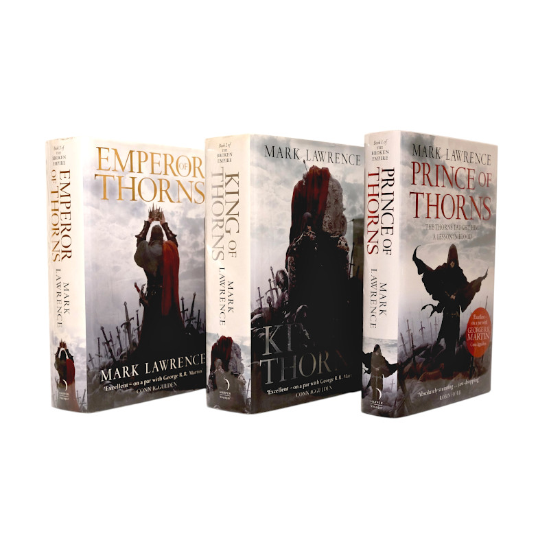 Hardcover. Condition: Near Fine. Dust Jacket Condition: Near Fine. 1st Edition. 1st edition,1st printing UK HBs. Prince of Thorns Signed and Numbered by the author. The King of Thorns and Emperor of Thorns Signed Lined & Dated. The complete Broken Empire Trilogy. All three books are in fine condition. Proving to be very collectible as a series. Quite rare to find a set now. Professionally packed in a strong twin walled box with plenty of protection to arrive safely.