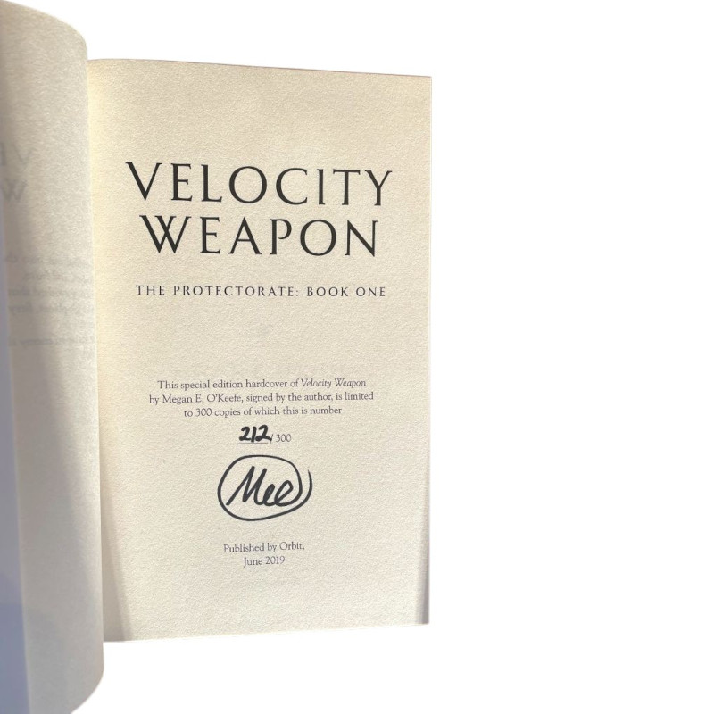 Fine. 1st Edition. 1st Edition, 1st Printing UK HBs. Signed and Matched Numbered to a limitation page by the author.Very fine collectors copies with protected dust jackets. Great reviews. “Velocity Weapon is a roller-coaster ride of pure delight wrapped up in a plot that will keep you guessing every step of the way. In fine/fine condition. Packed with great care in a strong twin walled carton with plenty of protection to ensure safe arrival of your copy. Signed by Author(s).